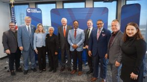 Moderators and panelists gather for a photo following the Cobb Chamber event.